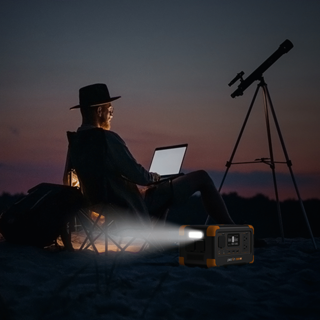 La Pecron E2000LFP con 3 paneles Aurora200 ofrece potencia y capacidad para alimentar varias luces y un portátil en jornadas completas.