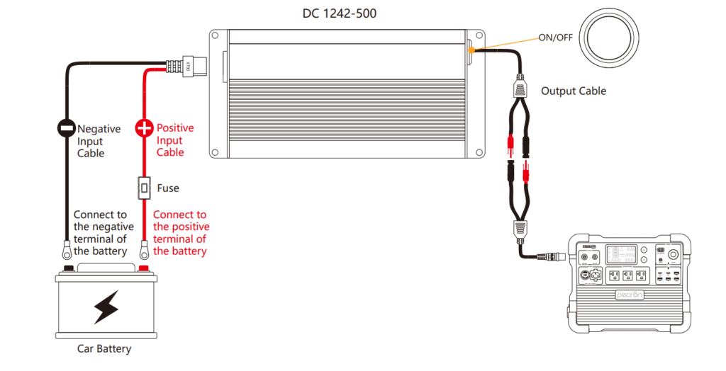 El Pecron Booster 500W resuelve este problema: convierte el 12V de tu vehículo en marcha en una fuente de carga potente, capaz de alimentar tus estaciones de energía Pecron con hasta 500W de potencia.
